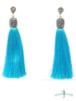 Turquoise Silk Tassel Earrings