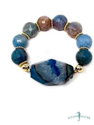 Rainbow & Blue Marble Agate Bracelet